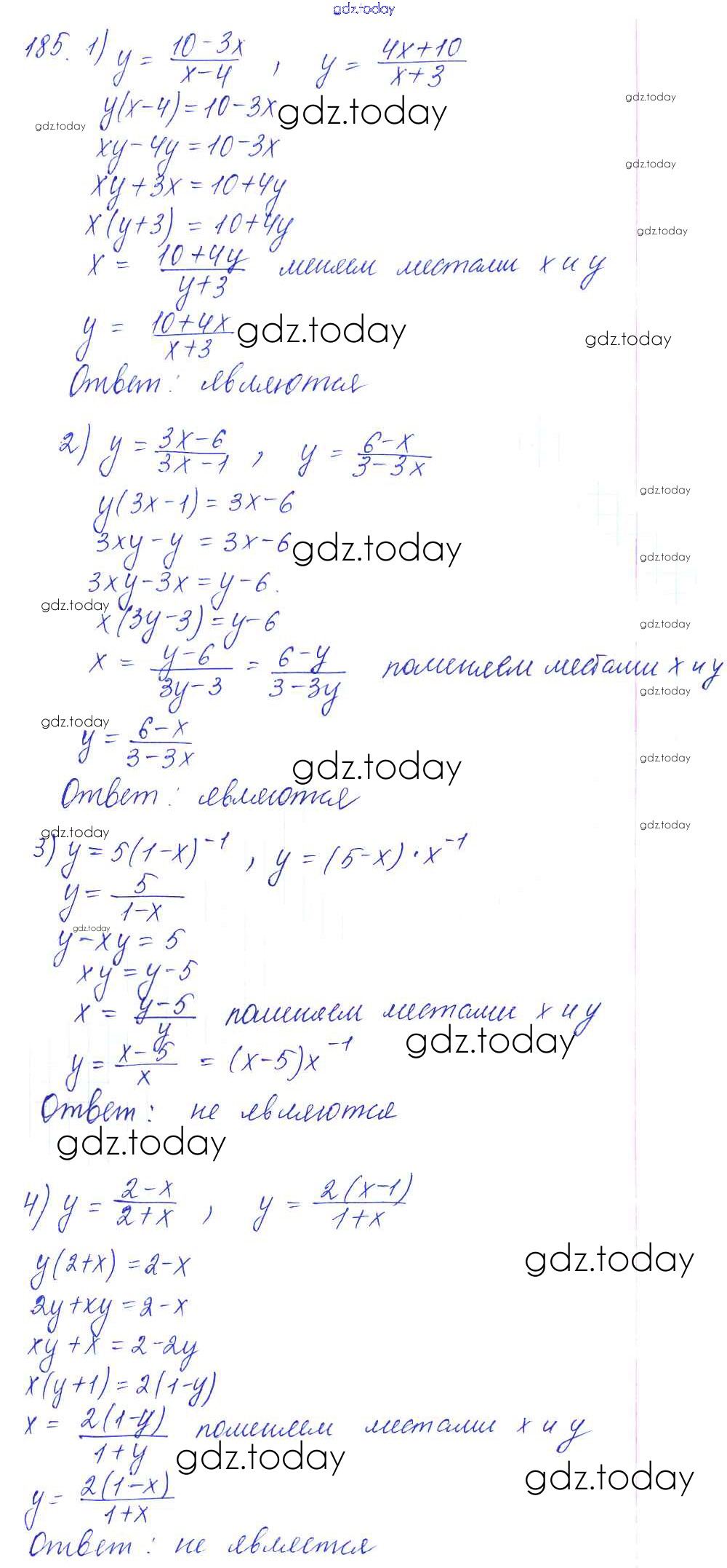 Ответы к Решение к упражнениям 185 Учебнику по Алгебре для 10-11 класса Алимов, Ткачева Базовый и углубленный уровень Просвещение 2015