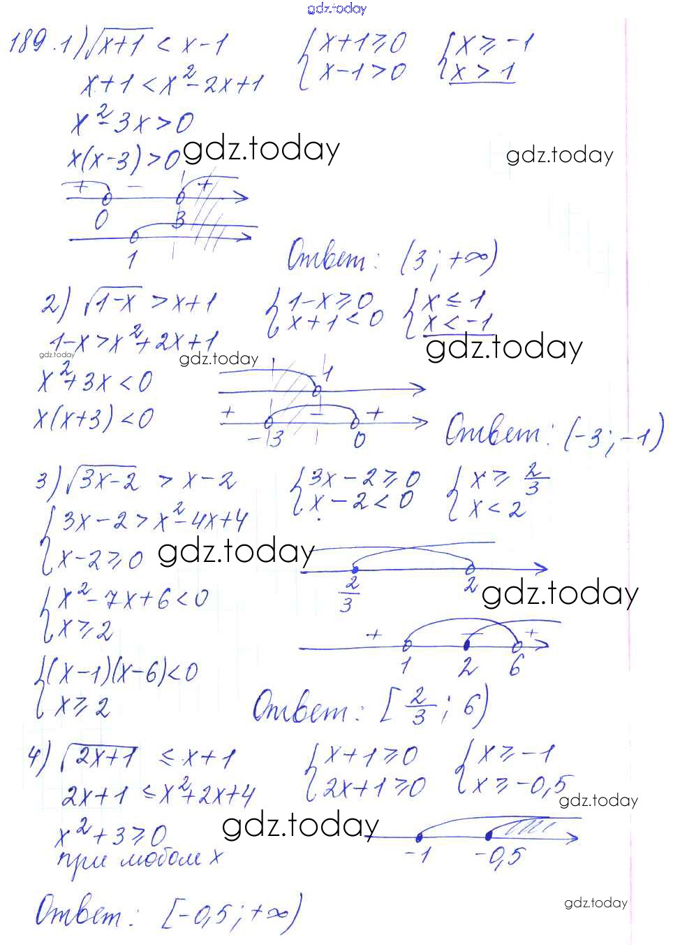 Ответы к Решение к упражнениям 189 Учебнику по Алгебре для 10-11 класса Алимов, Ткачева Базовый и углубленный уровень Просвещение 2015
