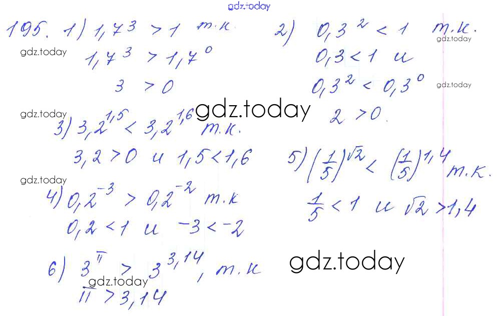 На страницах сайта gdz.today вы найдете учебный и вспомогательный материал, направленный на улучшения знаний школьной программы. ГДЗ - онлайн мир знаний Решение к упражнениям 195 Учебнику по Алгебре для 10-11 класса Алимов, Ткачева Базовый и углубленный уровень Просвещение 2015