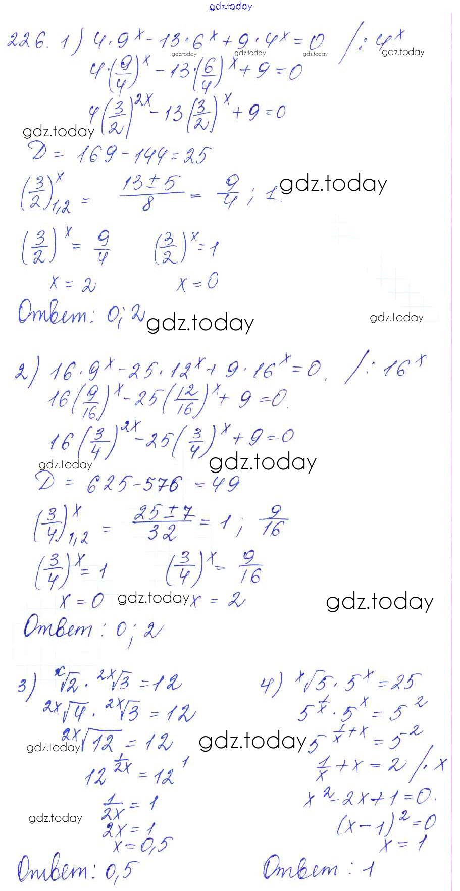 На страницах сайта gdz.today вы найдете учебный и вспомогательный материал, направленный на улучшения знаний школьной программы. ГДЗ - онлайн мир знаний Решение к упражнениям 226 Учебнику по Алгебре для 10-11 класса Алимов, Ткачева Базовый и углубленный уровень Просвещение 2015