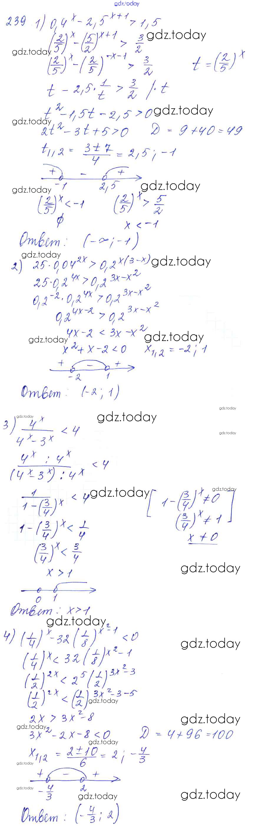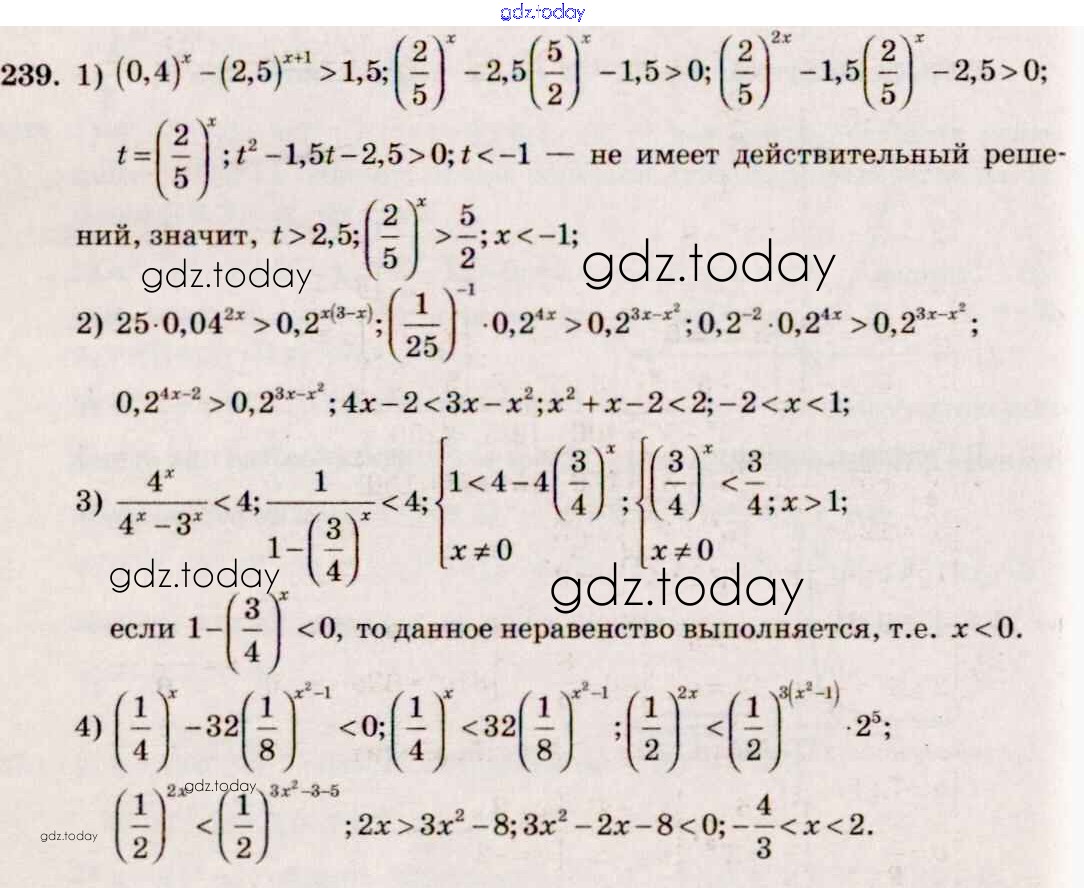 Ответы к Решение к упражнениям 239 Учебнику по Алгебре для 10-11 класса Алимов, Ткачева Базовый и углубленный уровень Просвещение 2015