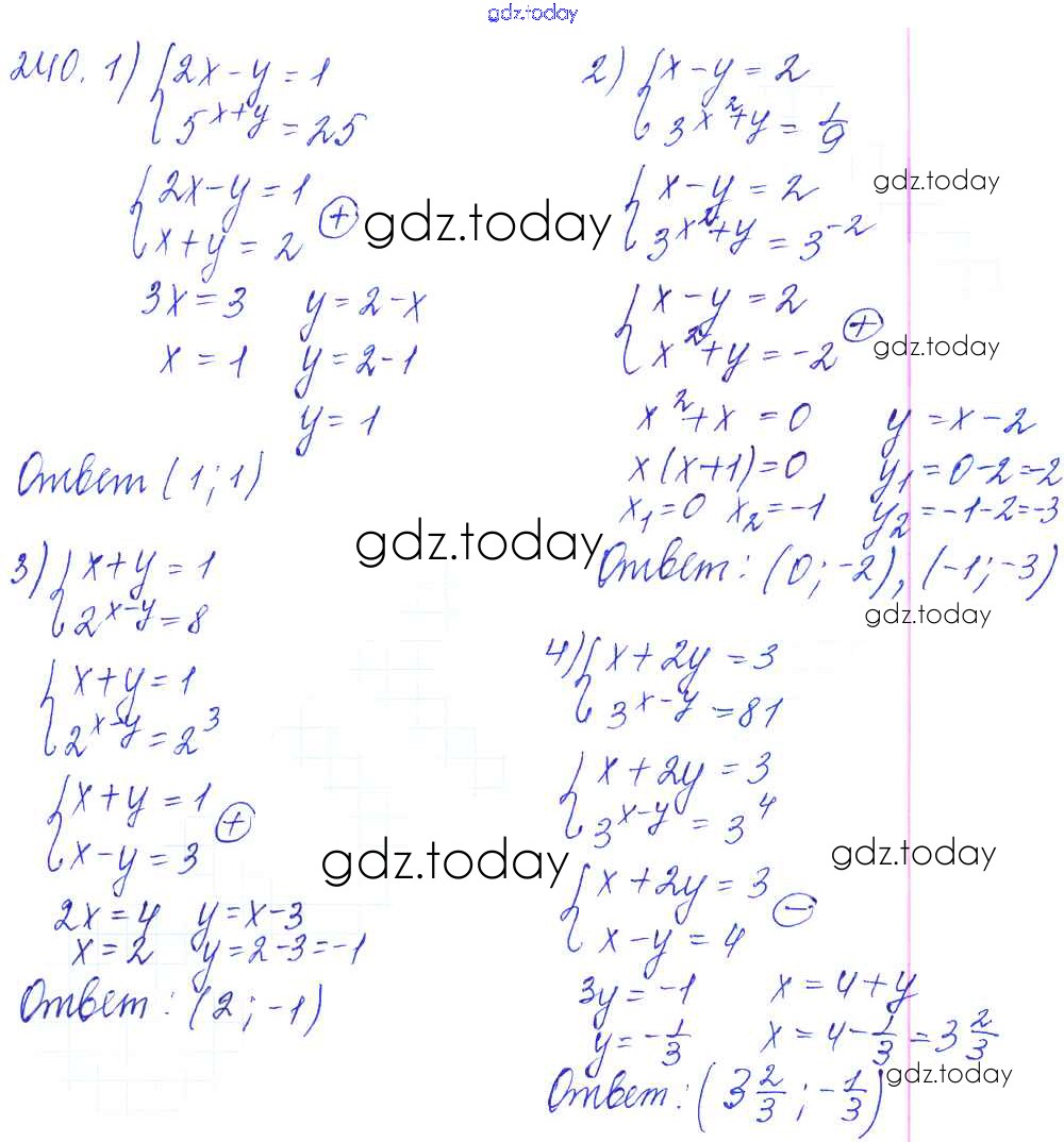 Ответы к Решение к упражнениям 240 Учебнику по Алгебре для 10-11 класса Алимов, Ткачева Базовый и углубленный уровень Просвещение 2015