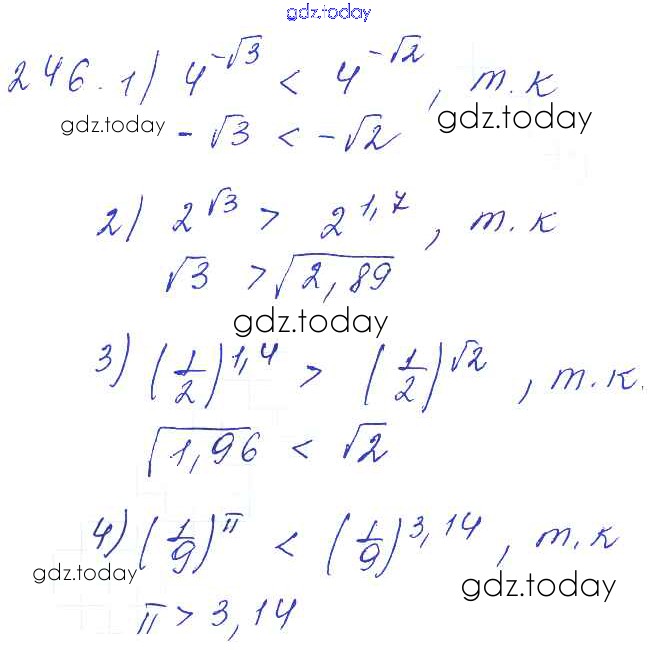 Ответы к Решение к упражнениям 246 Учебнику по Алгебре для 10-11 класса Алимов, Ткачева Базовый и углубленный уровень Просвещение 2015