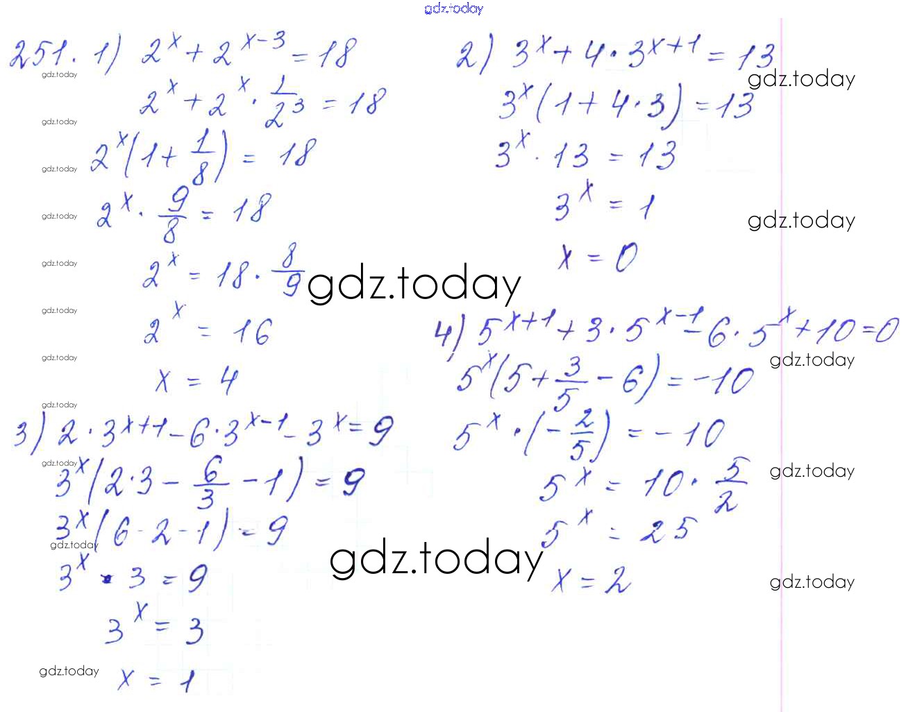 Ответы к Решение к упражнениям 251 Учебнику по Алгебре для 10-11 класса Алимов, Ткачева Базовый и углубленный уровень Просвещение 2015