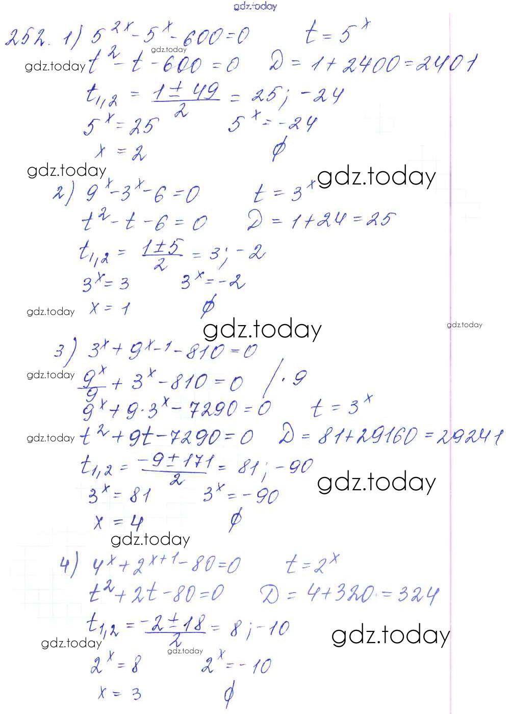 Ответы к Решение к упражнениям 252 Учебнику по Алгебре для 10-11 класса Алимов, Ткачева Базовый и углубленный уровень Просвещение 2015