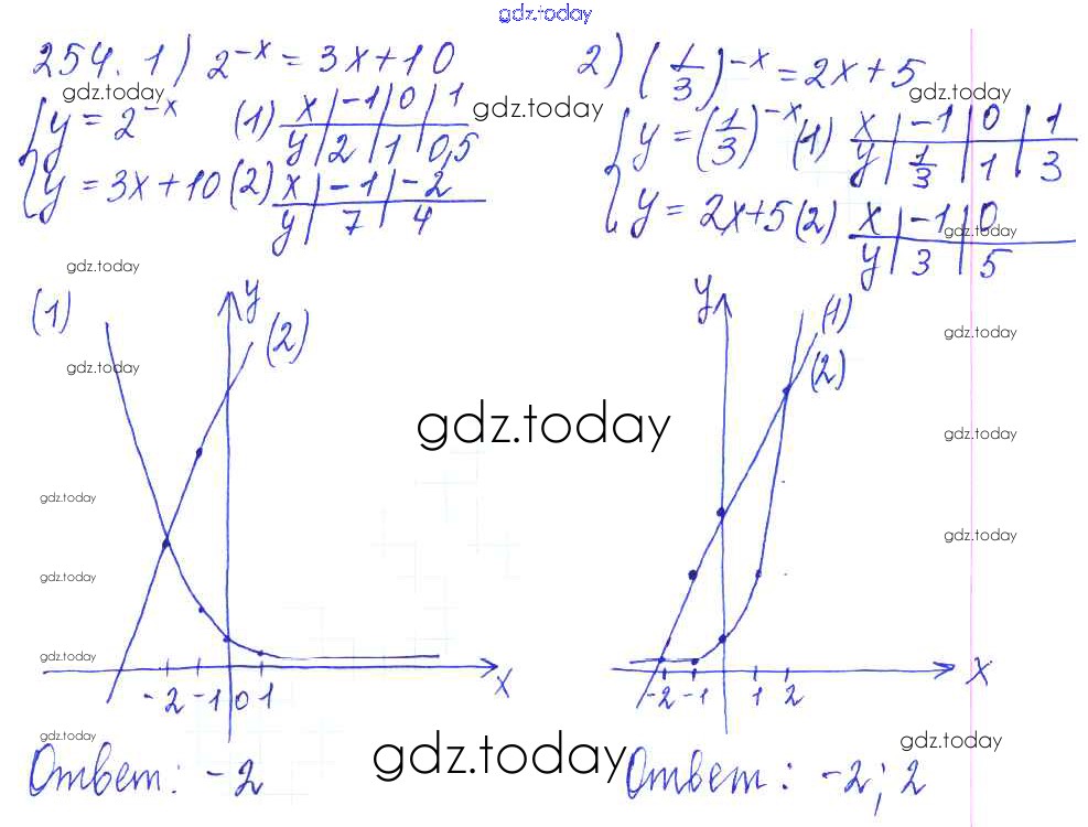 Ответы к Решение к упражнениям 254 Учебнику по Алгебре для 10-11 класса Алимов, Ткачева Базовый и углубленный уровень Просвещение 2015
