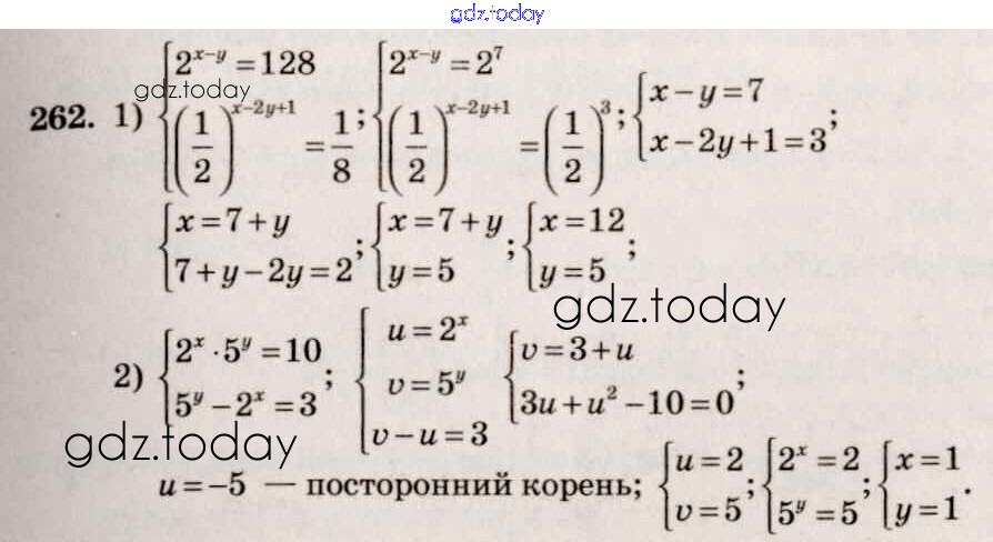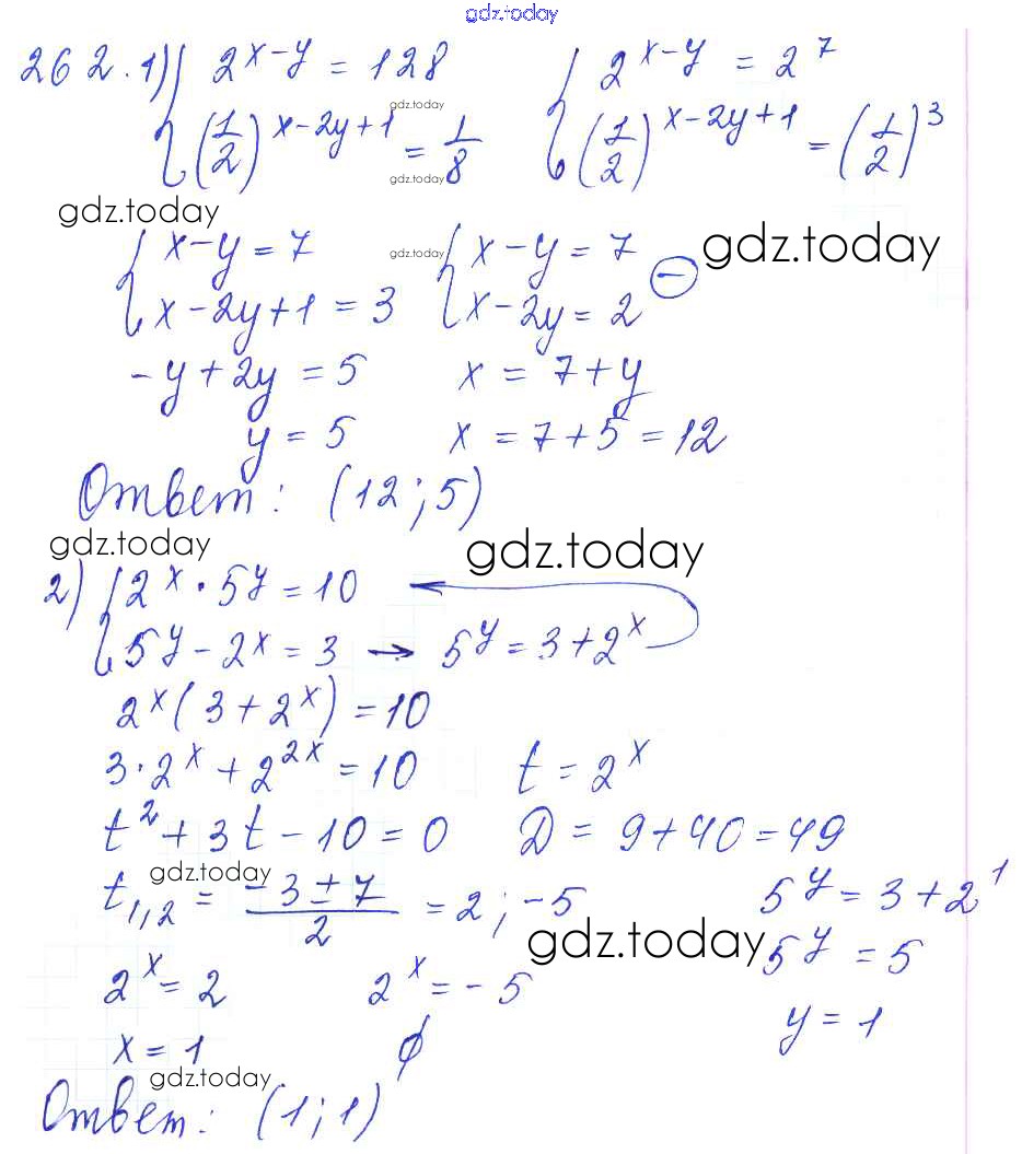 Ответы к Решение к упражнениям 262 Учебнику по Алгебре для 10-11 класса Алимов, Ткачева Базовый и углубленный уровень Просвещение 2015