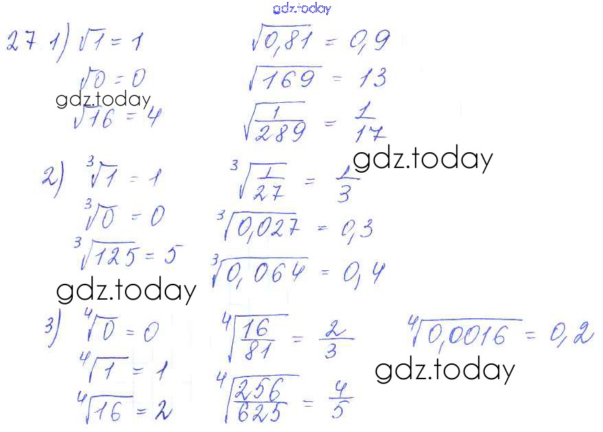 Ответы к Решение к упражнениям 27 Учебнику по Алгебре для 10-11 класса Алимов, Ткачева Базовый и углубленный уровень Просвещение 2015