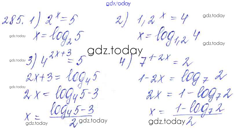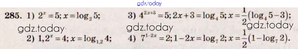 Ответы к Решение к упражнениям 285 Учебнику по Алгебре для 10-11 класса Алимов, Ткачева Базовый и углубленный уровень Просвещение 2015