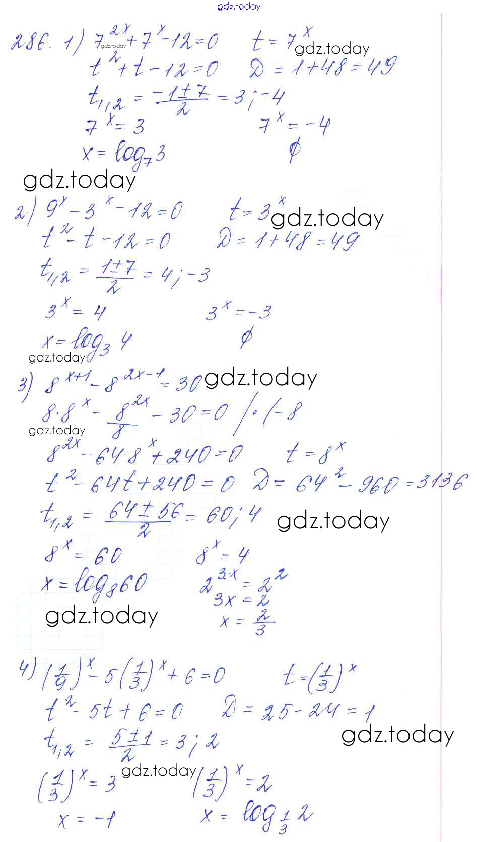 Ответы к Решение к упражнениям 286 Учебнику по Алгебре для 10-11 класса Алимов, Ткачева Базовый и углубленный уровень Просвещение 2015