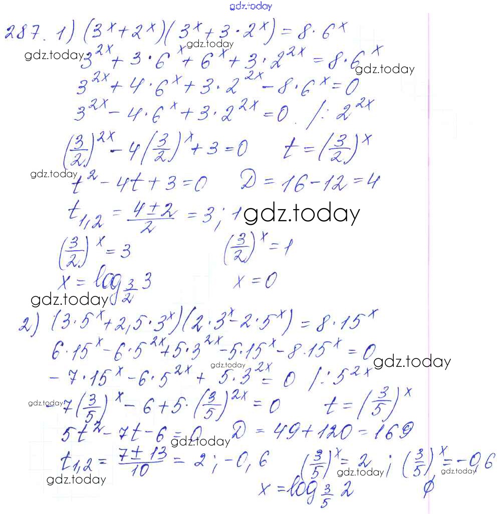 Ответы к Решение к упражнениям 287 Учебнику по Алгебре для 10-11 класса Алимов, Ткачева Базовый и углубленный уровень Просвещение 2015