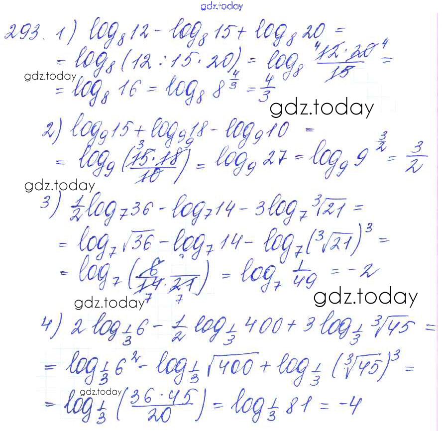 Ответы к Решение к упражнениям 293 Учебнику по Алгебре для 10-11 класса Алимов, Ткачева Базовый и углубленный уровень Просвещение 2015