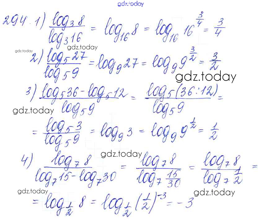 Ответы к Решение к упражнениям 294 Учебнику по Алгебре для 10-11 класса Алимов, Ткачева Базовый и углубленный уровень Просвещение 2015