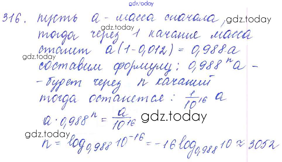 Ответы к Решение к упражнениям 316 Учебнику по Алгебре для 10-11 класса Алимов, Ткачева Базовый и углубленный уровень Просвещение 2015