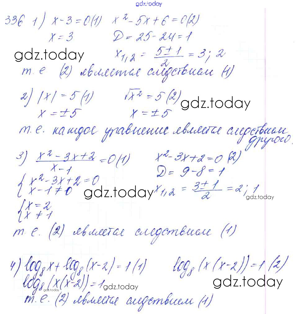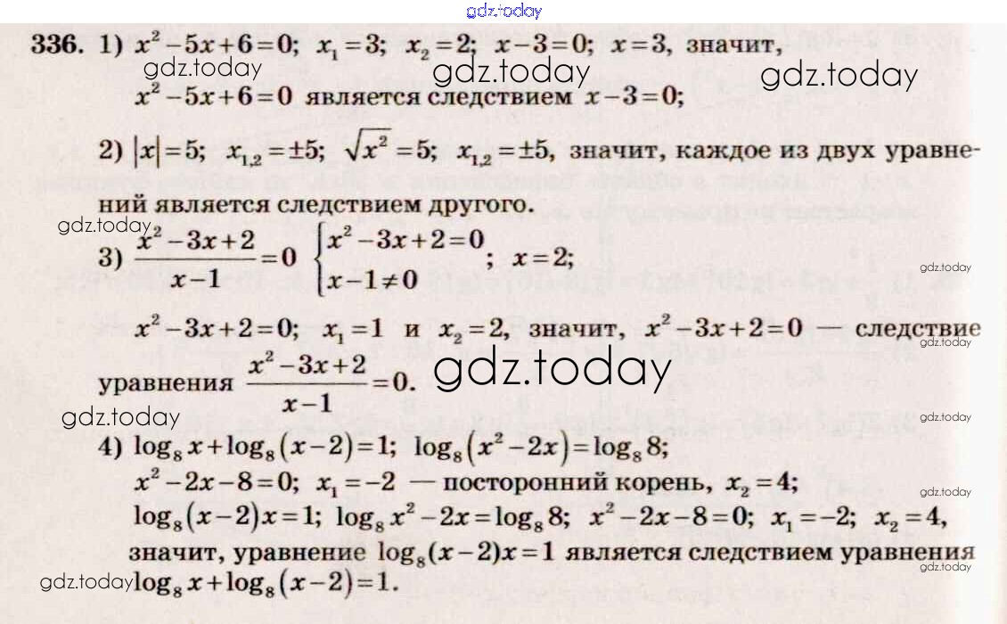 Ответы к Решение к упражнениям 336 Учебнику по Алгебре для 10-11 класса Алимов, Ткачева Базовый и углубленный уровень Просвещение 2015