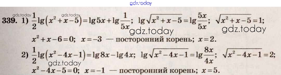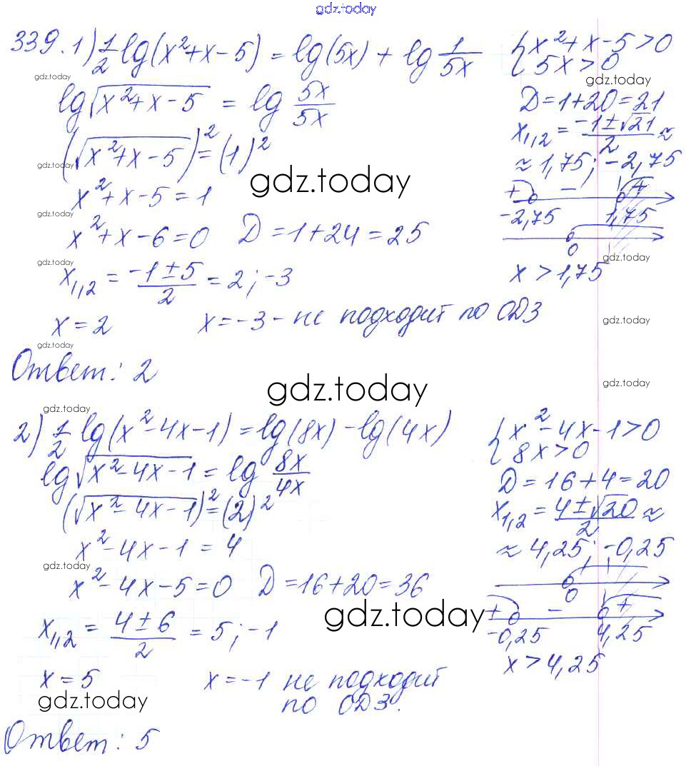 Ответы к Решение к упражнениям 339 Учебнику по Алгебре для 10-11 класса Алимов, Ткачева Базовый и углубленный уровень Просвещение 2015