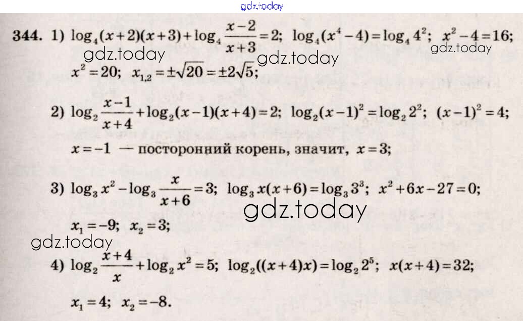 Ответы к Решение к упражнениям 344 Учебнику по Алгебре для 10-11 класса Алимов, Ткачева Базовый и углубленный уровень Просвещение 2015