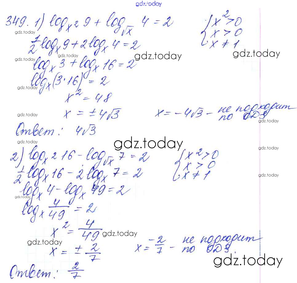 Ответы к Решение к упражнениям 349 Учебнику по Алгебре для 10-11 класса Алимов, Ткачева Базовый и углубленный уровень Просвещение 2015