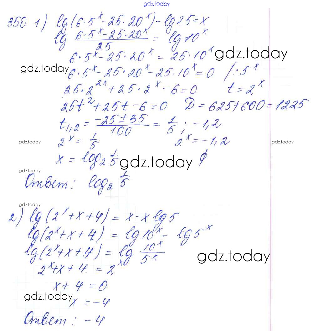 Ответы к Решение к упражнениям 350 Учебнику по Алгебре для 10-11 класса Алимов, Ткачева Базовый и углубленный уровень Просвещение 2015
