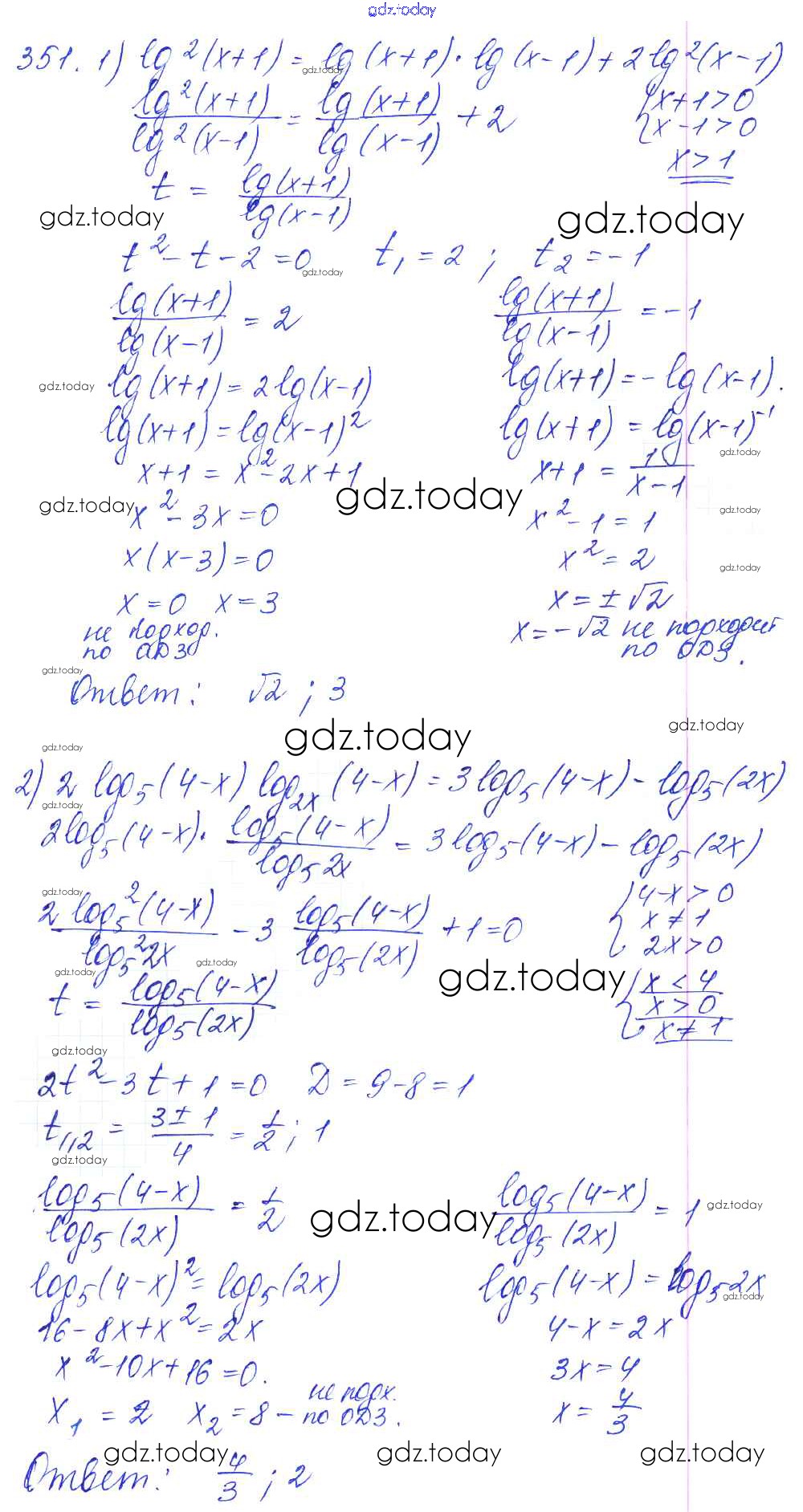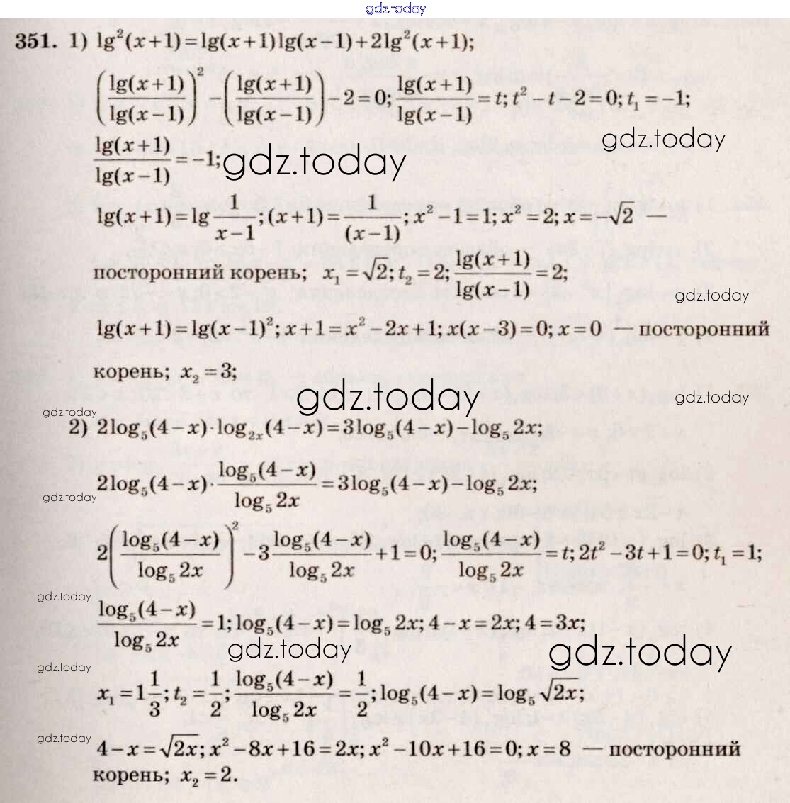 Ответы к Решение к упражнениям 351 Учебнику по Алгебре для 10-11 класса Алимов, Ткачева Базовый и углубленный уровень Просвещение 2015