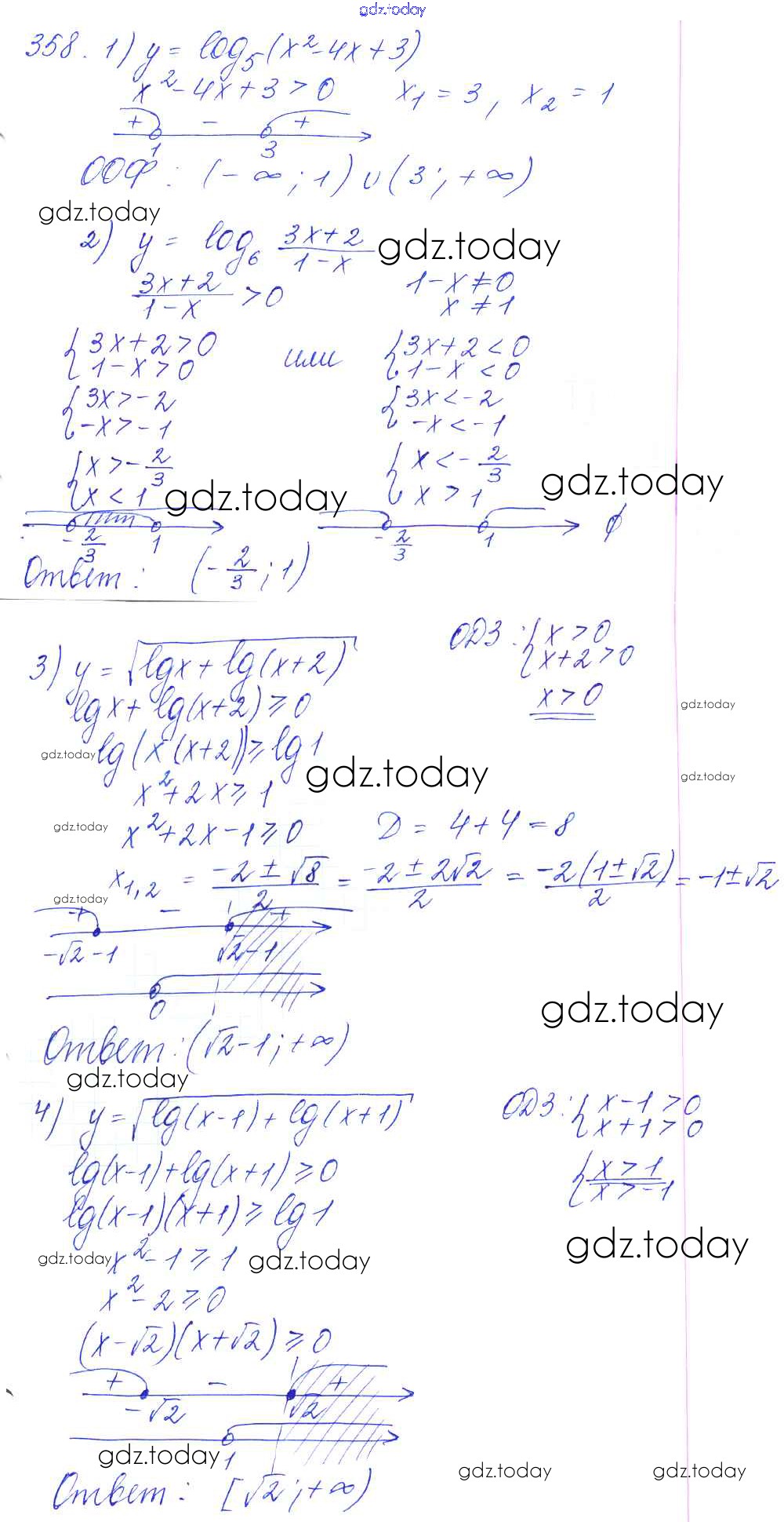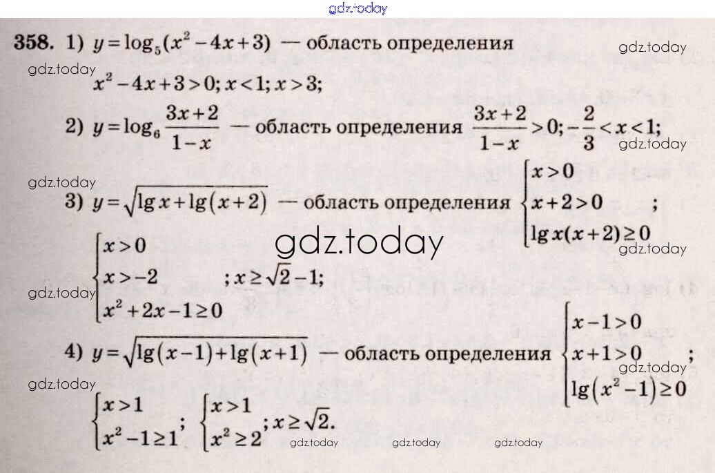 На страницах сайта gdz.today вы найдете учебный и вспомогательный материал, направленный на улучшения знаний школьной программы. ГДЗ - онлайн мир знаний Решение к упражнениям 358 Учебнику по Алгебре для 10-11 класса Алимов, Ткачева Базовый и углубленный уровень Просвещение 2015