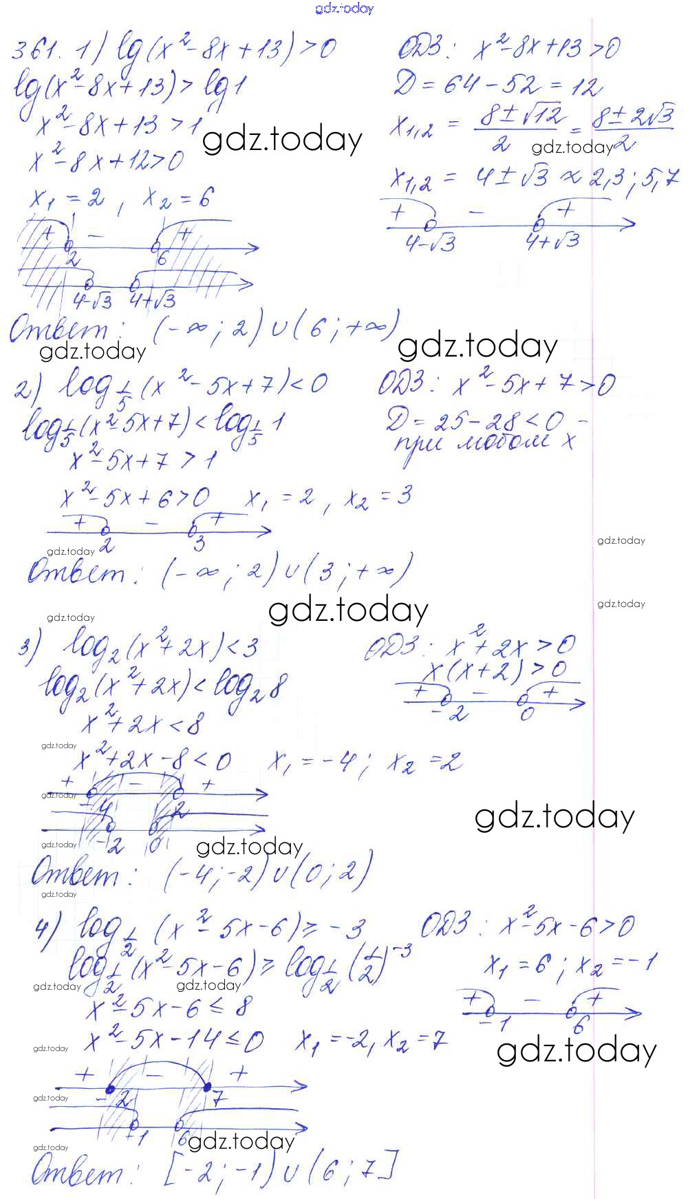 Ответы к Решение к упражнениям 361 Учебнику по Алгебре для 10-11 класса Алимов, Ткачева Базовый и углубленный уровень Просвещение 2015