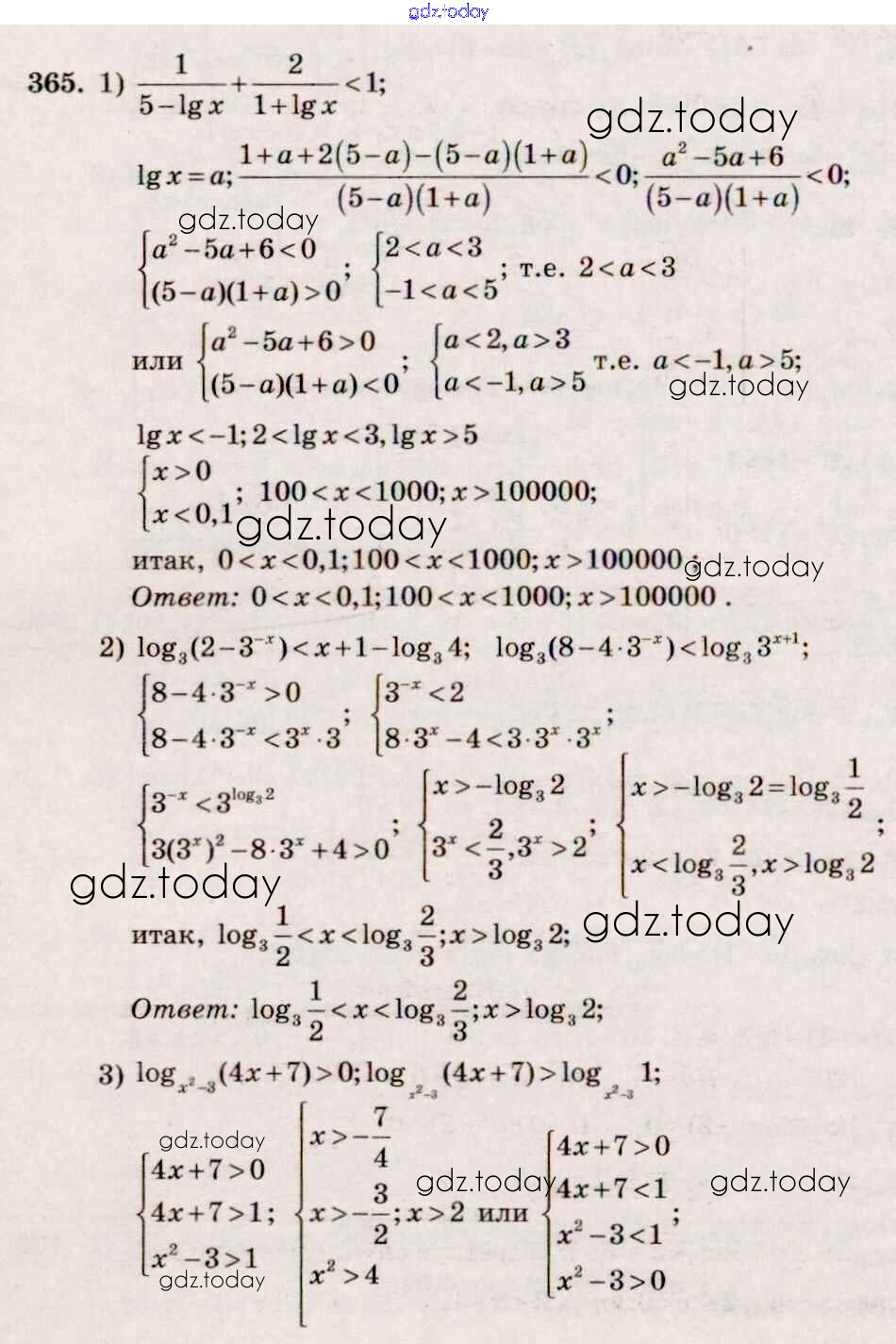 Ответы к Решение к упражнениям 365 Учебнику по Алгебре для 10-11 класса Алимов, Ткачева Базовый и углубленный уровень Просвещение 2015