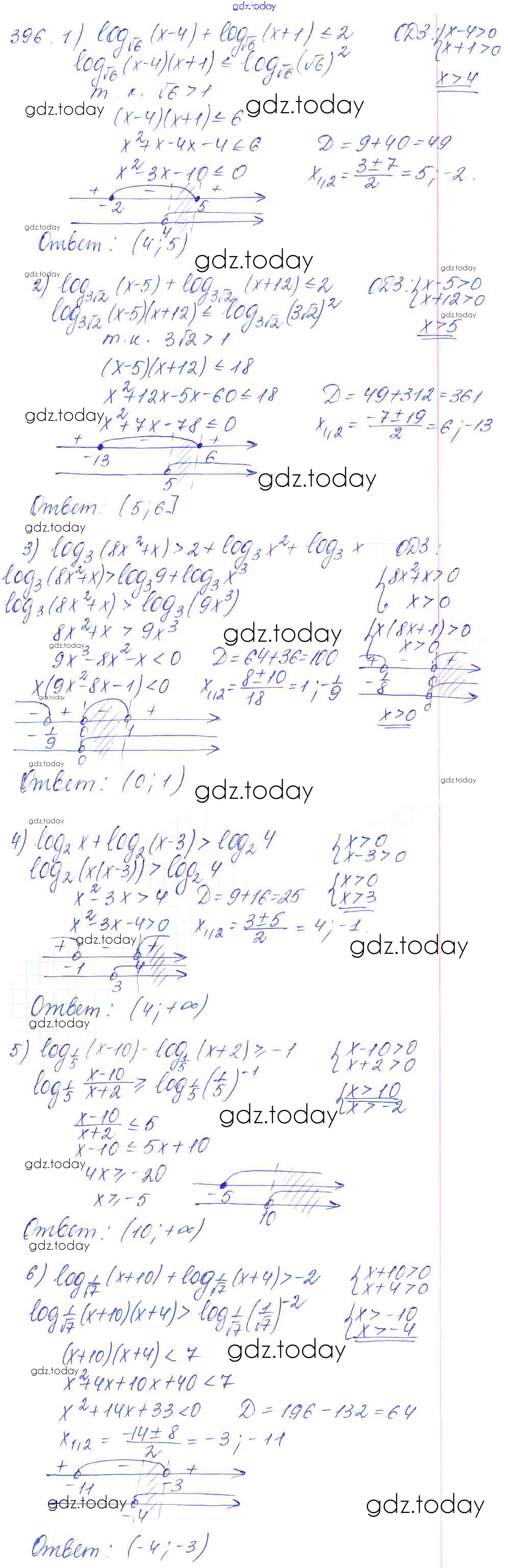 Ответы к Решение к упражнениям 396 Учебнику по Алгебре для 10-11 класса Алимов, Ткачева Базовый и углубленный уровень Просвещение 2015