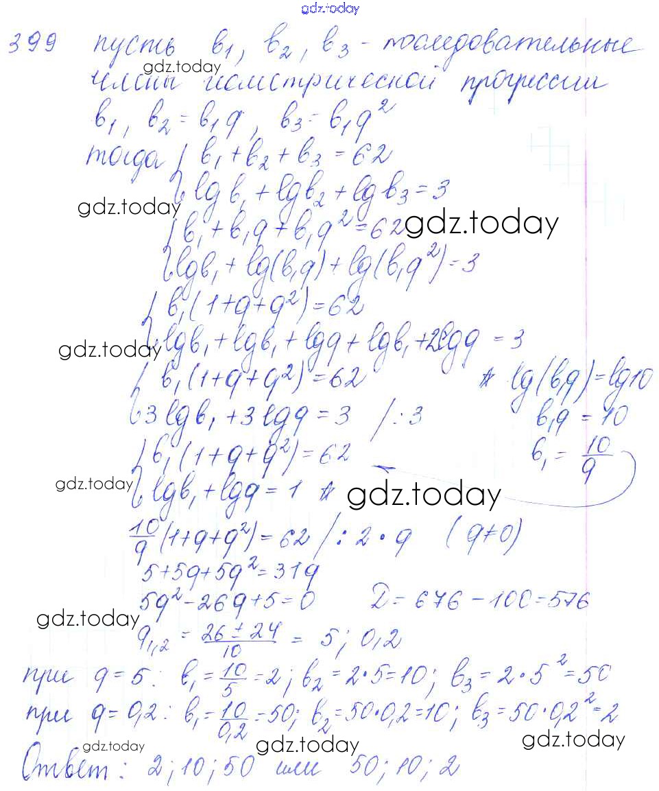 Ответы к Решение к упражнениям 399 Учебнику по Алгебре для 10-11 класса Алимов, Ткачева Базовый и углубленный уровень Просвещение 2015