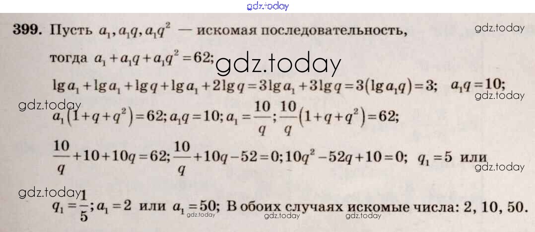 На страницах сайта gdz.today вы найдете учебный и вспомогательный материал, направленный на улучшения знаний школьной программы. ГДЗ - онлайн мир знаний Решение к упражнениям 399 Учебнику по Алгебре для 10-11 класса Алимов, Ткачева Базовый и углубленный уровень Просвещение 2015