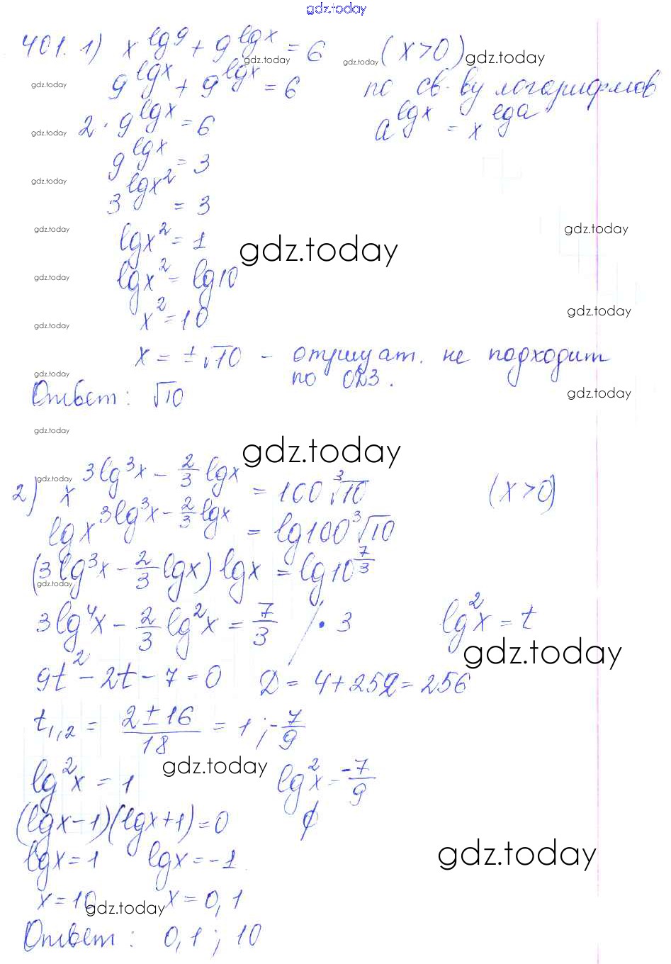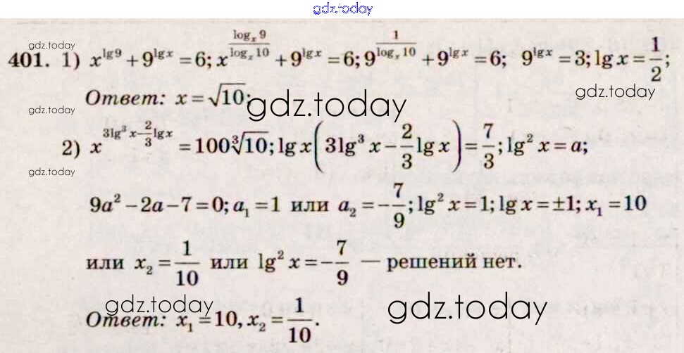 Ответы к Решение к упражнениям 401 Учебнику по Алгебре для 10-11 класса Алимов, Ткачева Базовый и углубленный уровень Просвещение 2015