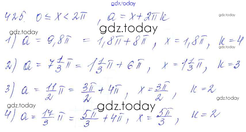 Ответы к Решение к упражнениям 425 Учебнику по Алгебре для 10-11 класса Алимов, Ткачева Базовый и углубленный уровень Просвещение 2015