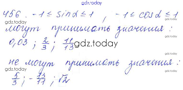 Ответы к Решение к упражнениям 456 Учебнику по Алгебре для 10-11 класса Алимов, Ткачева Базовый и углубленный уровень Просвещение 2015