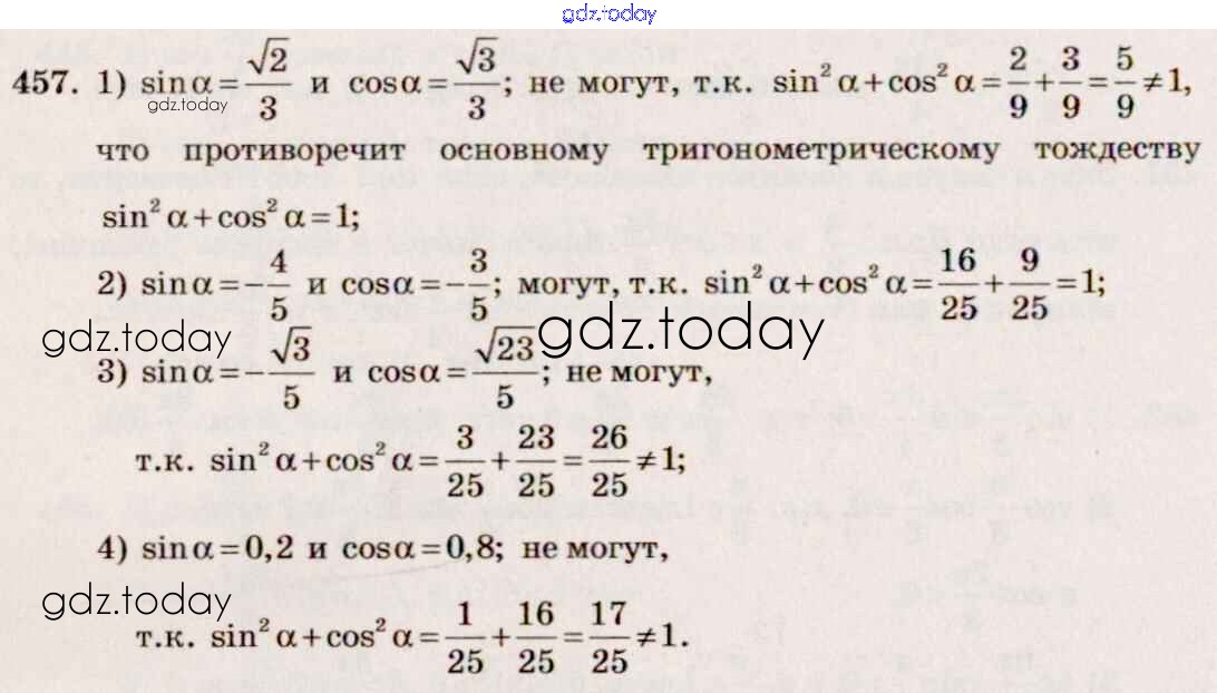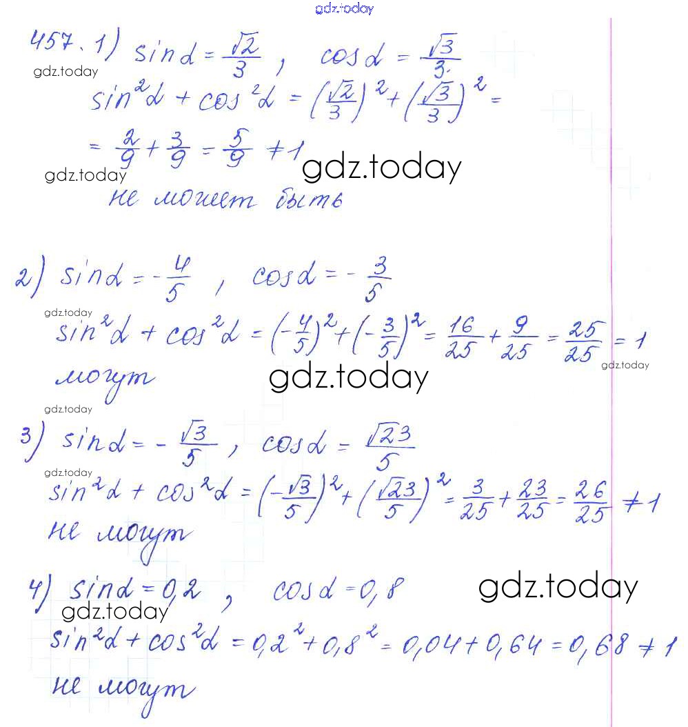 Ответы к Решение к упражнениям 457 Учебнику по Алгебре для 10-11 класса Алимов, Ткачева Базовый и углубленный уровень Просвещение 2015