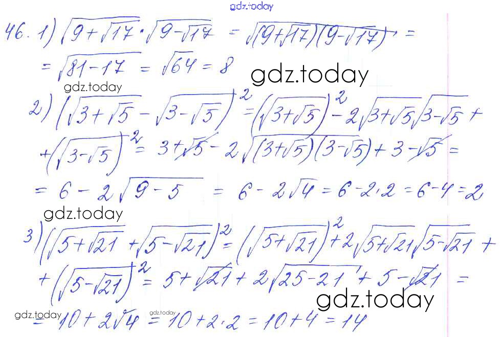 Ответы к Решение к упражнениям 46 Учебнику по Алгебре для 10-11 класса Алимов, Ткачева Базовый и углубленный уровень Просвещение 2015