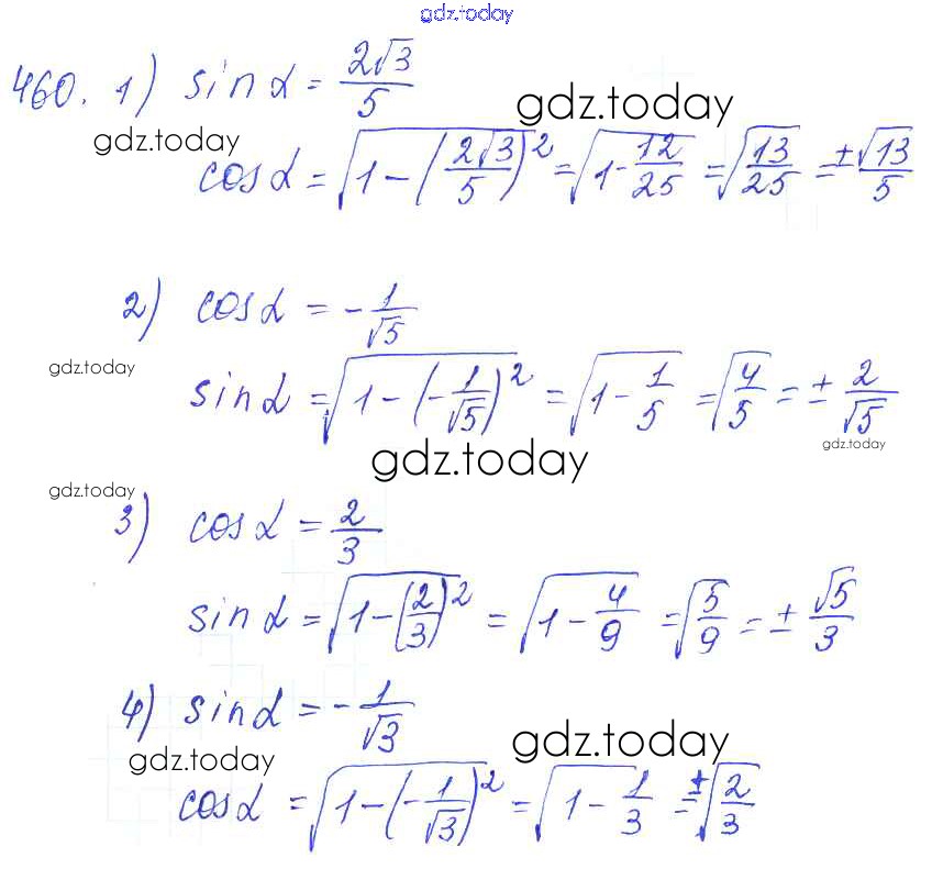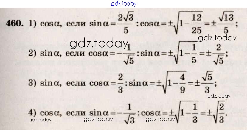Ответы к Решение к упражнениям 460 Учебнику по Алгебре для 10-11 класса Алимов, Ткачева Базовый и углубленный уровень Просвещение 2015