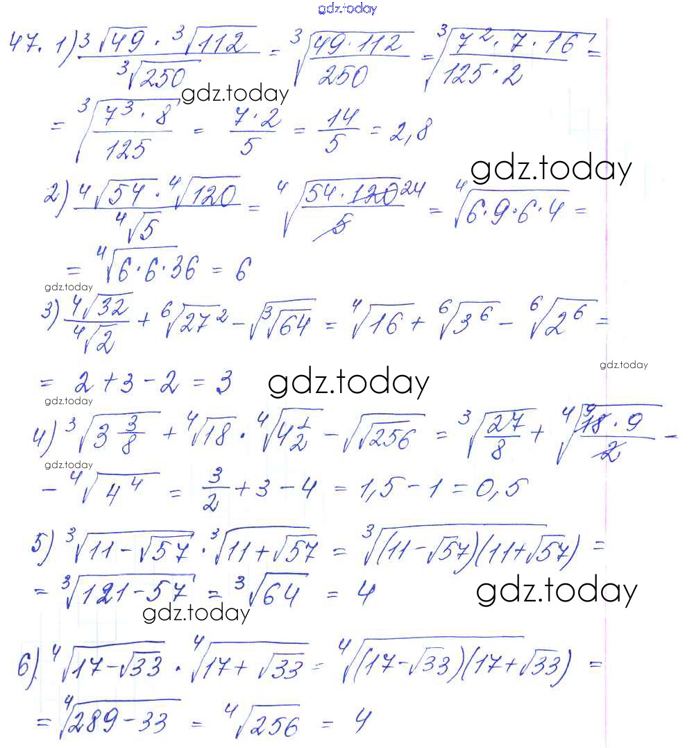 Ответы к Решение к упражнениям 47 Учебнику по Алгебре для 10-11 класса Алимов, Ткачева Базовый и углубленный уровень Просвещение 2015