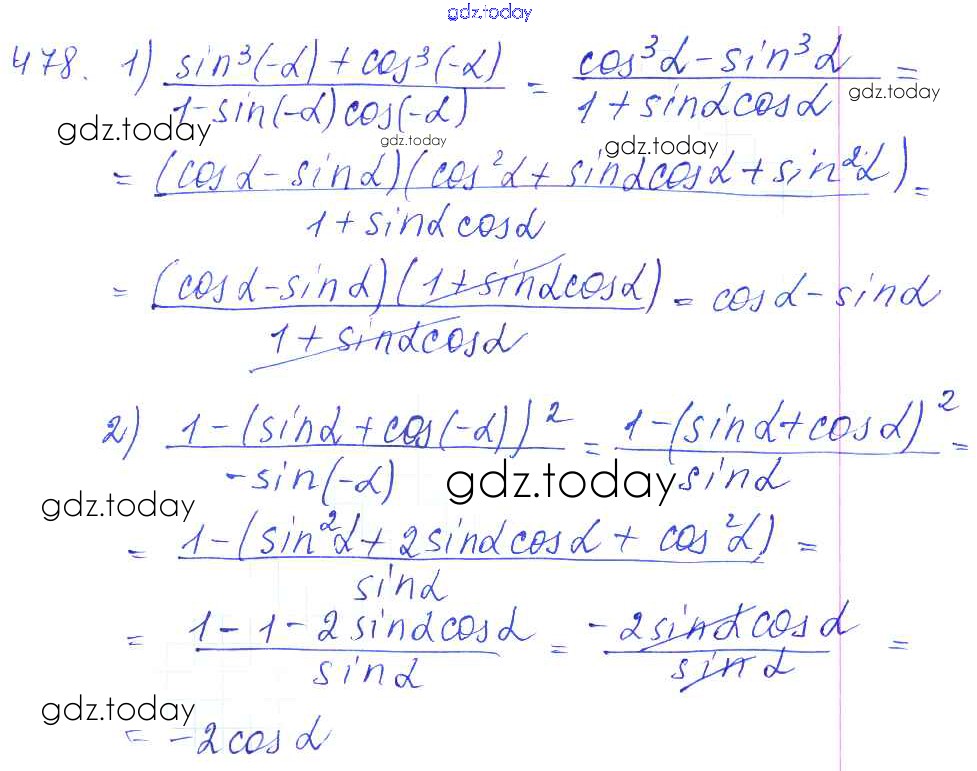 Ответы к Решение к упражнениям 478 Учебнику по Алгебре для 10-11 класса Алимов, Ткачева Базовый и углубленный уровень Просвещение 2015