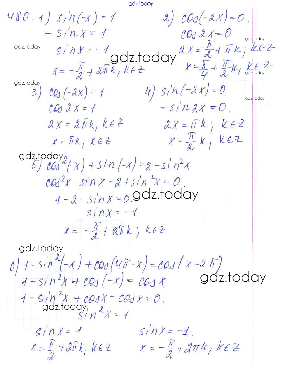 Ответы к Решение к упражнениям 480 Учебнику по Алгебре для 10-11 класса Алимов, Ткачева Базовый и углубленный уровень Просвещение 2015