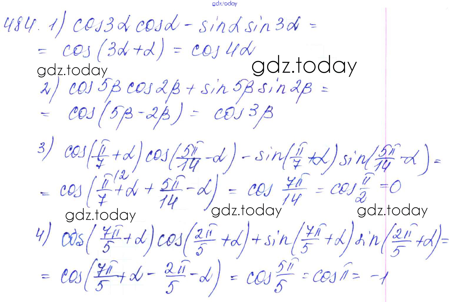Ответы к Решение к упражнениям 484 Учебнику по Алгебре для 10-11 класса Алимов, Ткачева Базовый и углубленный уровень Просвещение 2015