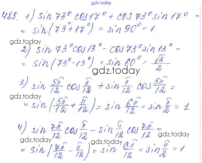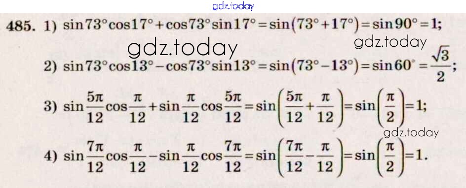Ответы к Решение к упражнениям 485 Учебнику по Алгебре для 10-11 класса Алимов, Ткачева Базовый и углубленный уровень Просвещение 2015