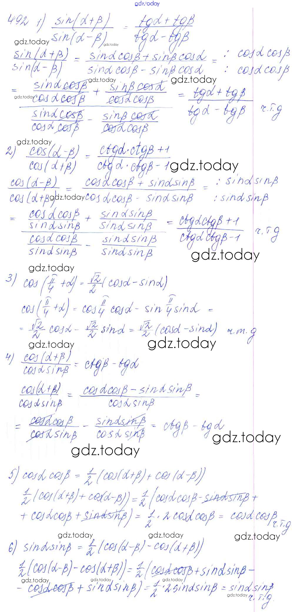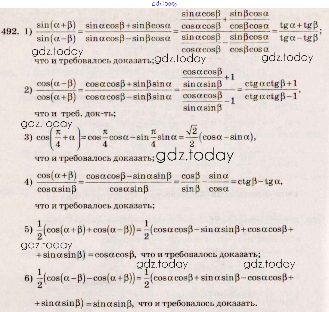 Ответы к Решение к упражнениям 492 Учебнику по Алгебре для 10-11 класса Алимов, Ткачева Базовый и углубленный уровень Просвещение 2015