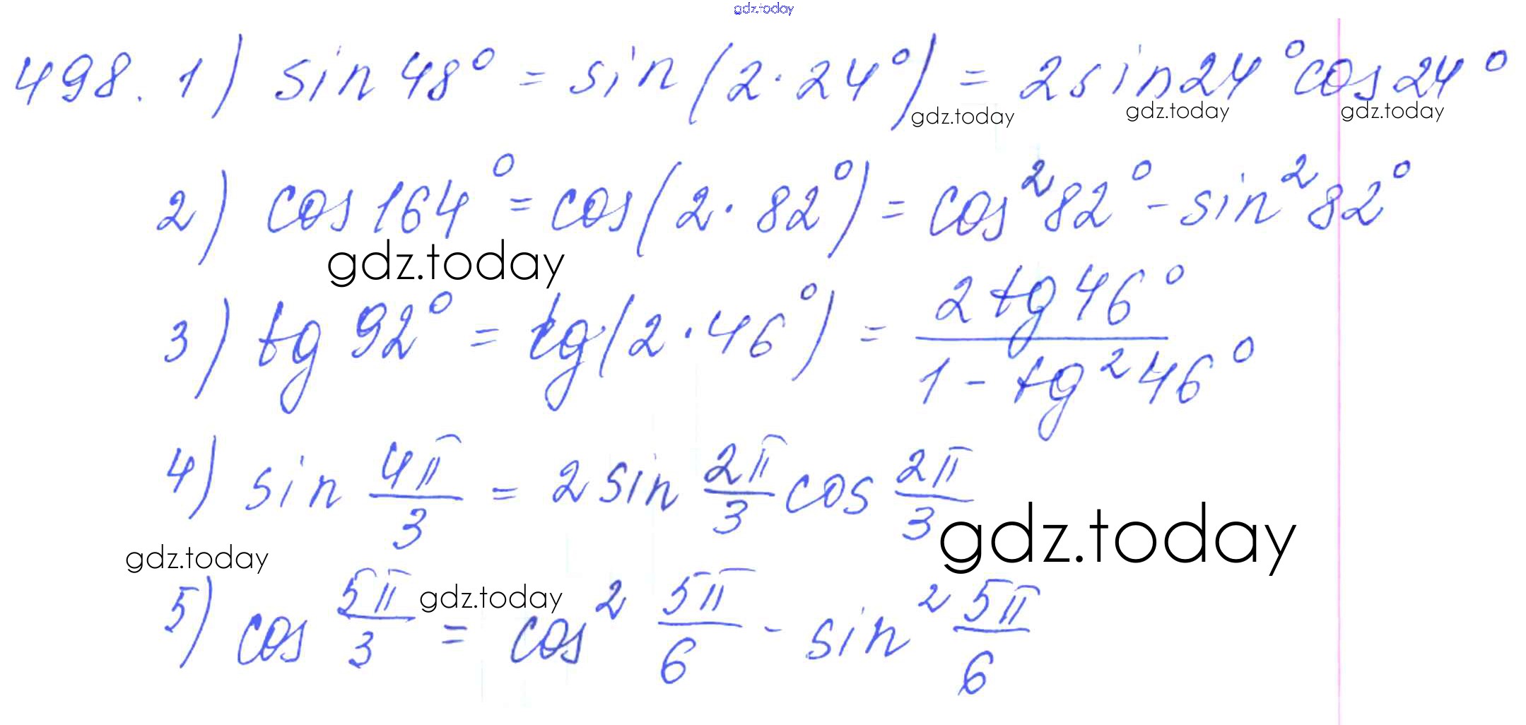 Ответы к Решение к упражнениям 498 Учебнику по Алгебре для 10-11 класса Алимов, Ткачева Базовый и углубленный уровень Просвещение 2015