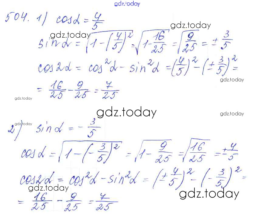 Ответы к Решение к упражнениям 504 Учебнику по Алгебре для 10-11 класса Алимов, Ткачева Базовый и углубленный уровень Просвещение 2015