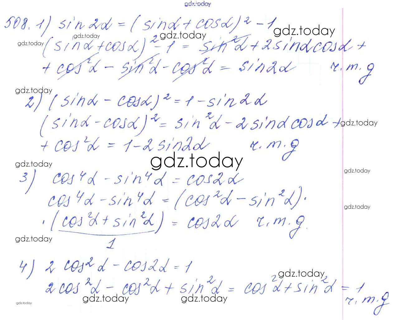 На страницах сайта gdz.today вы найдете учебный и вспомогательный материал, направленный на улучшения знаний школьной программы. ГДЗ - онлайн мир знаний Решение к упражнениям 508 Учебнику по Алгебре для 10-11 класса Алимов, Ткачева Базовый и углубленный уровень Просвещение 2015