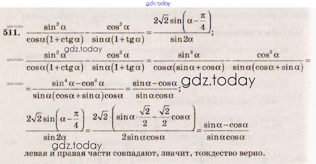 На страницах сайта gdz.today вы найдете учебный и вспомогательный материал, направленный на улучшения знаний школьной программы. ГДЗ - онлайн мир знаний Решение к упражнениям 511 Учебнику по Алгебре для 10-11 класса Алимов, Ткачева Базовый и углубленный уровень Просвещение 2015