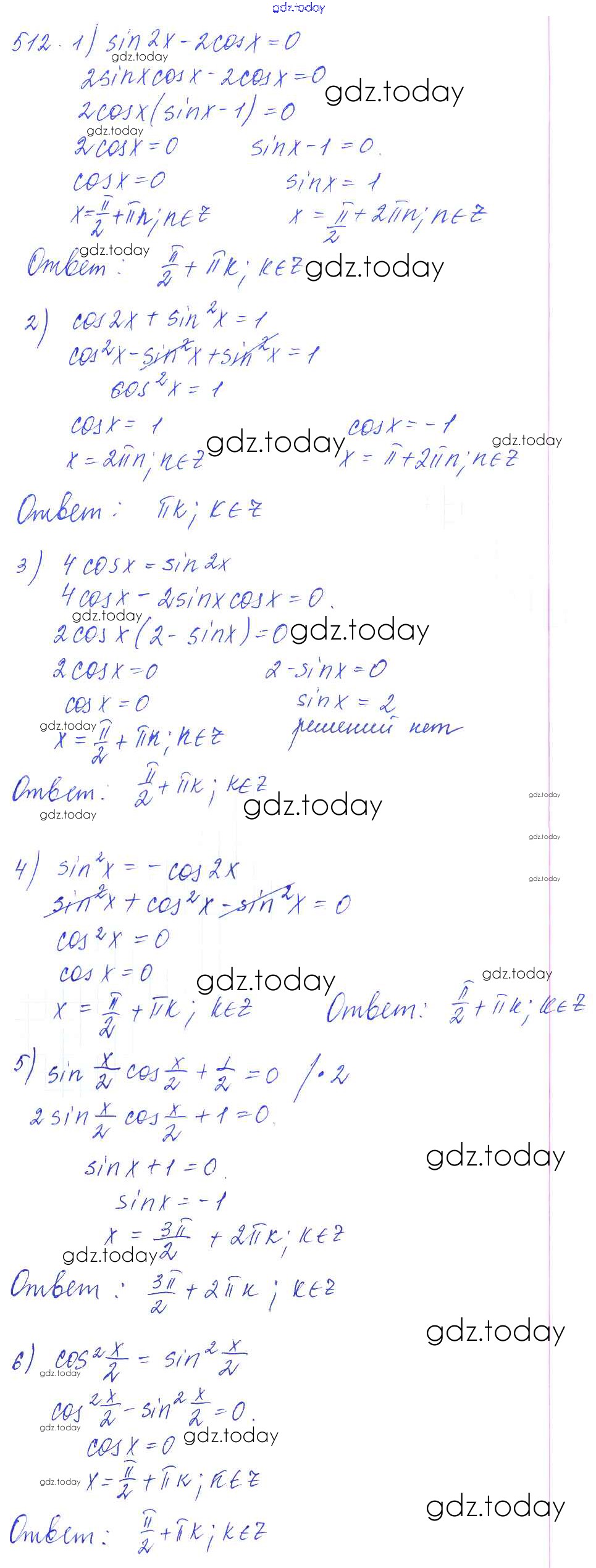 Ответы к Решение к упражнениям 512 Учебнику по Алгебре для 10-11 класса Алимов, Ткачева Базовый и углубленный уровень Просвещение 2015