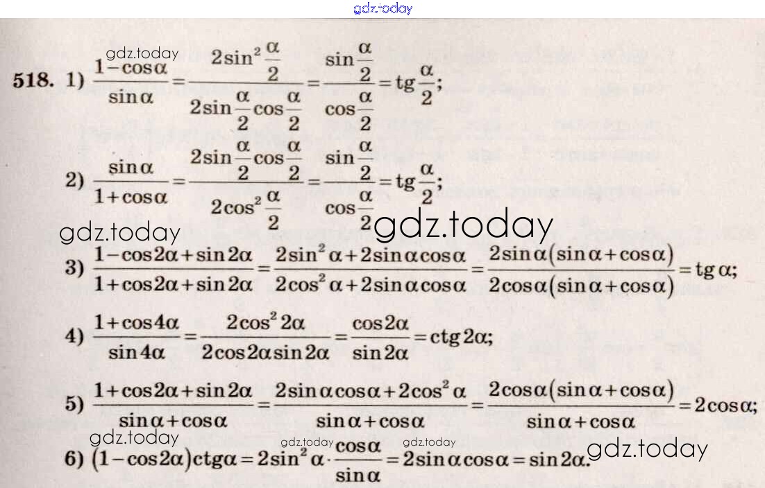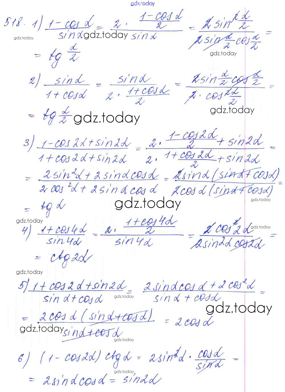 На страницах сайта gdz.today вы найдете учебный и вспомогательный материал, направленный на улучшения знаний школьной программы. ГДЗ - онлайн мир знаний Решение к упражнениям 518 Учебнику по Алгебре для 10-11 класса Алимов, Ткачева Базовый и углубленный уровень Просвещение 2015