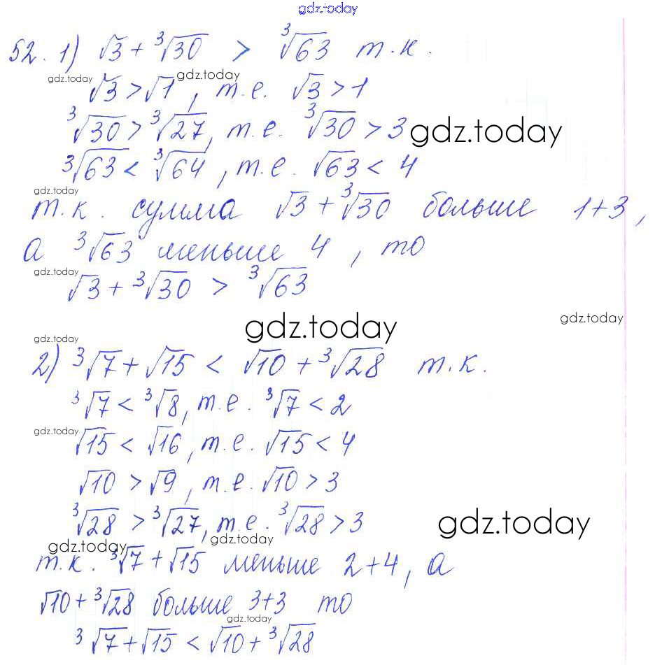 Ответы к Решение к упражнениям 52 Учебнику по Алгебре для 10-11 класса Алимов, Ткачева Базовый и углубленный уровень Просвещение 2015