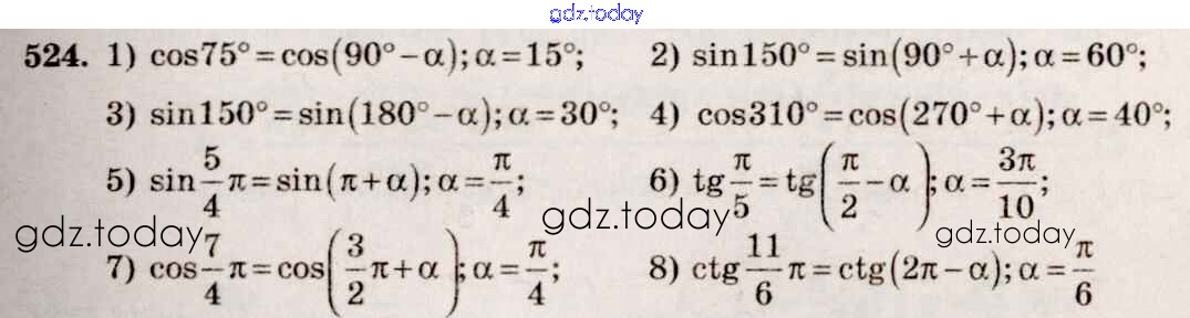 Ответы к Решение к упражнениям 524 Учебнику по Алгебре для 10-11 класса Алимов, Ткачева Базовый и углубленный уровень Просвещение 2015
